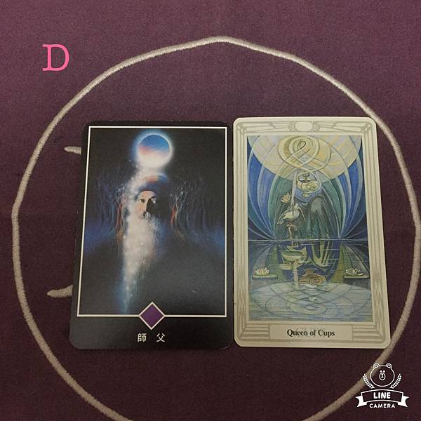 D.選擇D的你,你的潛意識成熟而敏感,接受生命中到來的事物,臣服於生命帶給你的經歷,並時常察覺心念起伏轉換,從中觀察了解自己,看見內在本質,你的內在有強大的智慧,你明瞭生命是你的導師,用什麼角度看待來到你生命中的事物是自己的選擇,自己才是人生的主人。